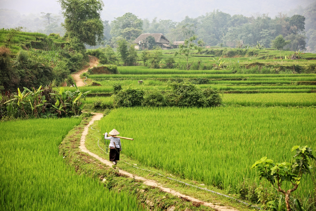 Le nord du Vietnam est célèbre pour ses paysages montagneux, où les rizières en terrasses forment des vagues dorées et vertes au rythme des saisons. La région du haut Tonkin est un véritable paradis pour les amateurs de trek. Les paysages y sont somptueux et les villages traversés sont très pittoresques. Les collines de rizières en terrasses, sculptées par des générations de cultivateurs, créent des scènes pittoresques, particulièrement au lever et au coucher du soleil. En automne, les rizières prennent des teintes dorées, offrant une vue imprenable sur les vallées verdoyantes.